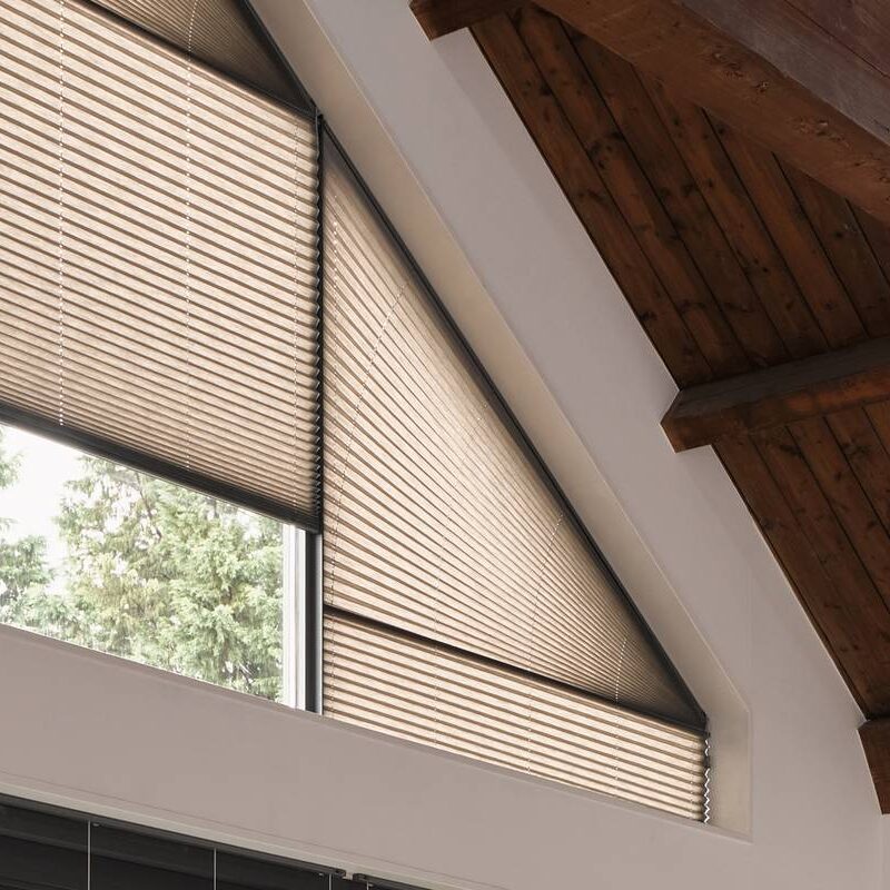 Le store Duette® Luxaflex crée une couche d’air isolante grâce à sa structure alvéolaire. Idéal pour réduire l’éblouissement, limiter les déperditions et s’adapter aux fenêtres complexes (trapèze, de toit, oscillo‑battant). Options Top‑Down/Bottom‑Up, Jour/Nuit et motorisation.